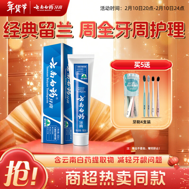 自营云南白药经典系列牙膏 健齿护龈改善牙龈问题 清新口气留兰香型牙膏180g