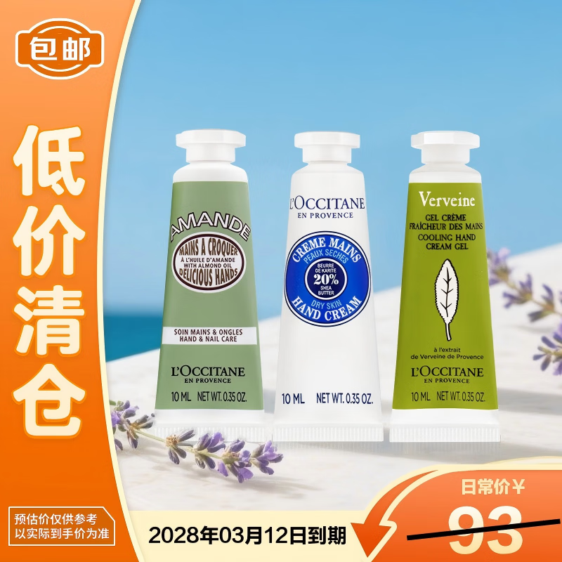 欧舒丹护手霜10ml*3(乳木果*1+甜扁桃*1+马鞭草*1)保湿修护【临期清仓】