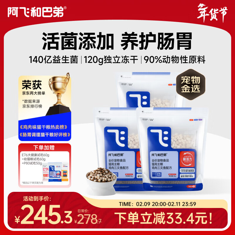 自营阿飞和巴弟猫粮E76益生菌全价冻干双拼猫粮全阶段通用猫粮 2kg*3袋