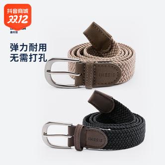 旗舰店迪卡侬腰带男士女士编织腰带情侣松紧免打孔帆布腰带皮带338174