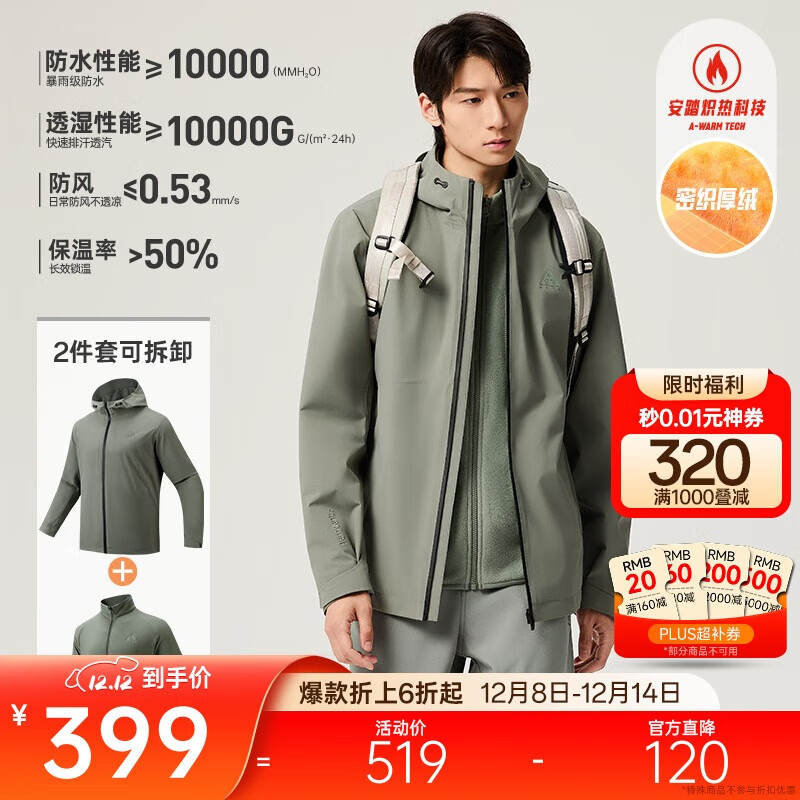 自营安踏火壳软壳衣丨大地之壳2.0运动外套男冬季耐磨加绒连帽夹克