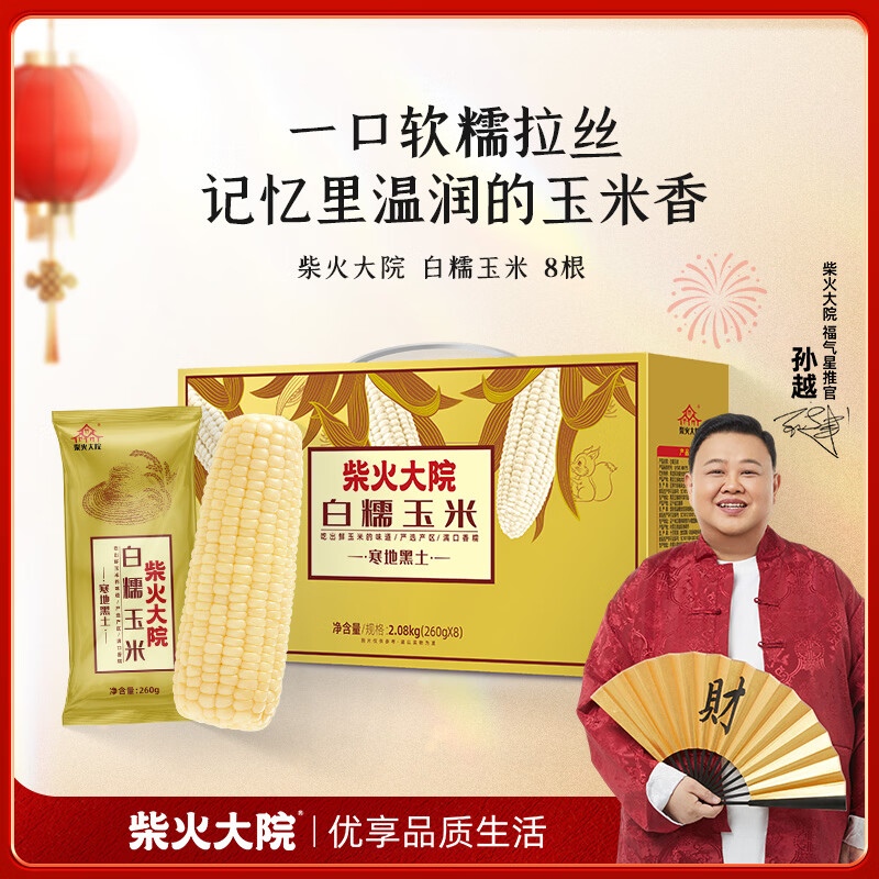 自营柴火大院 白甜糯玉米 8根 4.16斤 东北粘玉米 真空包装 低脂早餐 粗粮杂粮