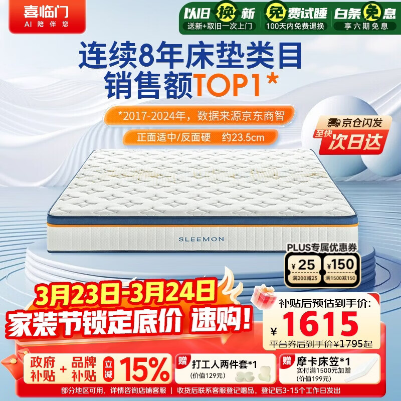 自营喜临门梦蝶床垫 乳胶椰棕床垫抗菌防螨独袋弹簧床垫 1.8x2米 软硬适中