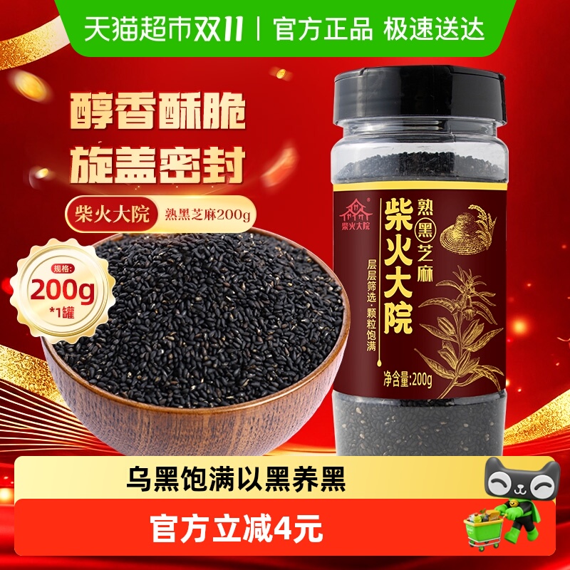 柴火大院熟黑芝麻 五谷杂粮粗粮 即食 烘焙干吃 熟白芝麻伴侣