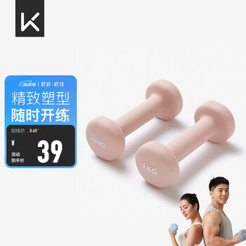 自营Keep 彩色浸塑哑铃 男女家用家庭健身肌肉塑形手臂轻重量樱粉 1kg*2