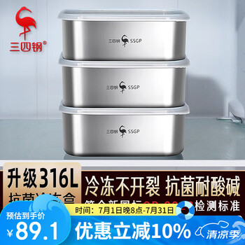 自营三四钢316L不锈钢保鲜盒饭盒冰箱冷冻盒食品级肉类速冻分装3个装W373512