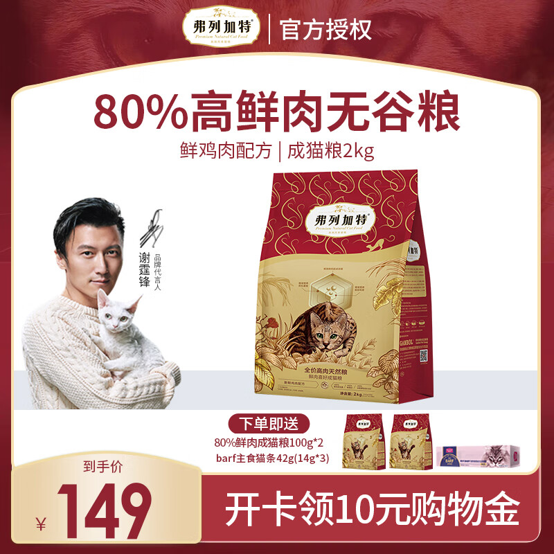 弗列加特全价猫粮 成猫幼猫80%鲜肉无谷粮 室内英短缅因营养天然粮 鲜鸡肉丨喜好成猫粮2kg
