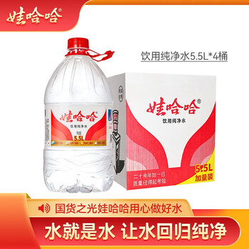娃哈哈纯净水饮用水5.5L*4桶 煲汤泡茶水 大桶水 家庭办公室企业桶装水