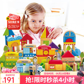 旗舰店Hape大颗粒木质积木 生活趣味情景拼搭积木桶装早教玩具大促618 E8029 125PCS城市情景积木