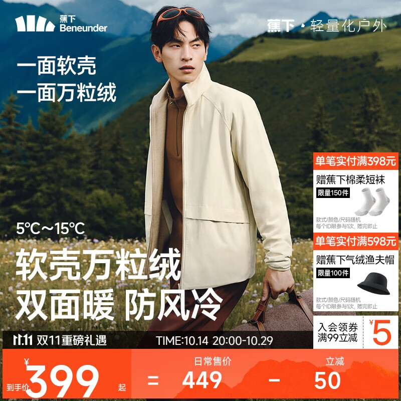 自营蕉下(beneunder)男士摇粒绒外套可双面穿行政夹克软壳冲锋衣内胆PM129棕-白L
