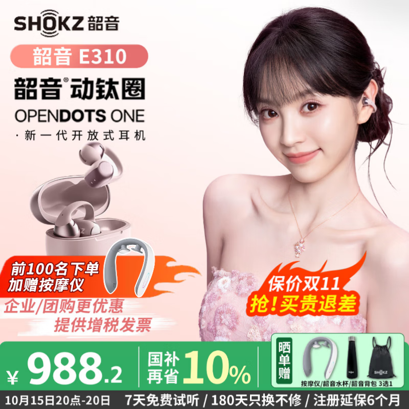 旗舰店韶音(SHOKZ)李现同款OpenDots ONE E310耳夹式耳机无线蓝牙耳机动钛圈杜比音效不入耳健身运动跑步耳机长续航 柔雾粉【田曦薇同款 新品】