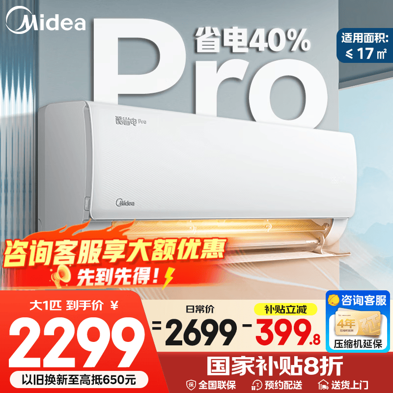 旗舰店美的(Midea)空调挂机 风尊三代/二代 全面风 四季空调 新一级能效变频冷暖 舒适省电 智能除菌家用 家电补贴 风尊二代Pro 大1.5匹 双排冷凝