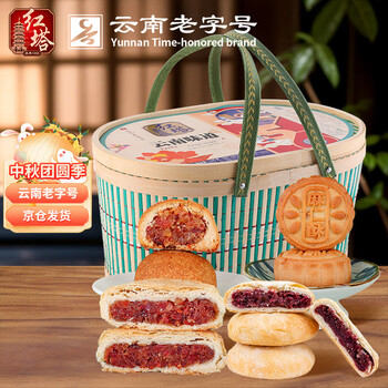 自营红塔 云南味道竹篮月饼礼盒1kg 中秋滇式云腿月饼 云南老字号团购送礼