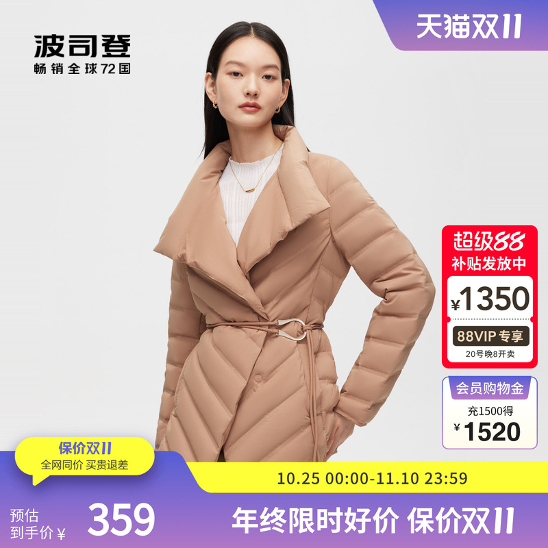 旗舰店【鹅绒】波司登奥莱女轻商务翻领舒适零压环扣腰带修身轻薄羽绒服