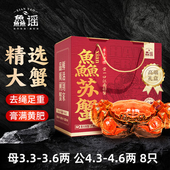 自营【活蟹】鱻谣 大闸蟹 公4.3-4.6两母3.3-3.6两 4对8只 生鲜螃蟹礼盒 源头直发包邮
