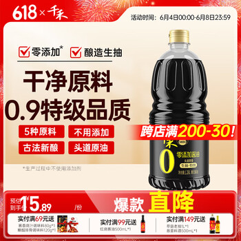 旗舰店千禾0添加酱油 特级酿造酱油 炒菜凉拌生抽1.28L
