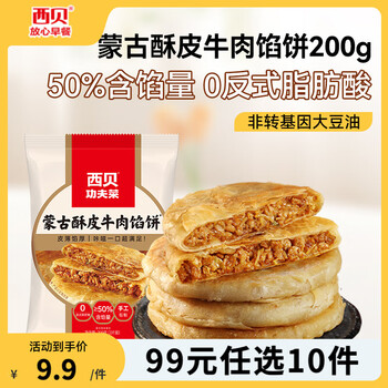旗舰店西贝莜面村【99元10件】牛肉馅饼包子纸皮烧麦黄馍馍玉米羹贝果卷饼儿童早餐 牛肉馅饼200g(100g*2片