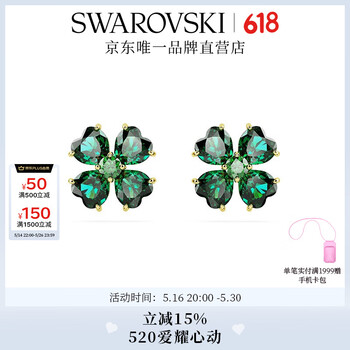 旗舰店施华洛世奇(SWAROVSKI)Idyllia四叶草耳环耳钉轻奢饰品520礼物女 绿色 5666236