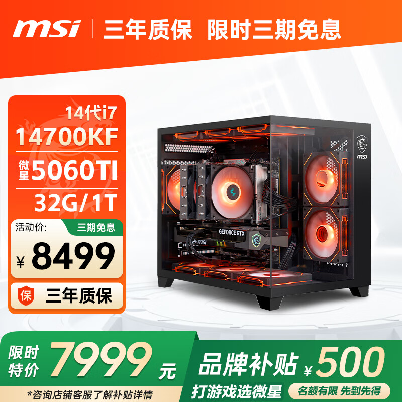 旗舰店微星(MSI)刀锋全家桶 14700KF 265K 5070Ti 5060Ti显卡主机水冷游戏电竞直播电脑AI渲染DIY组装机 配一:i7 14700KF+5060Ti龙爵OC