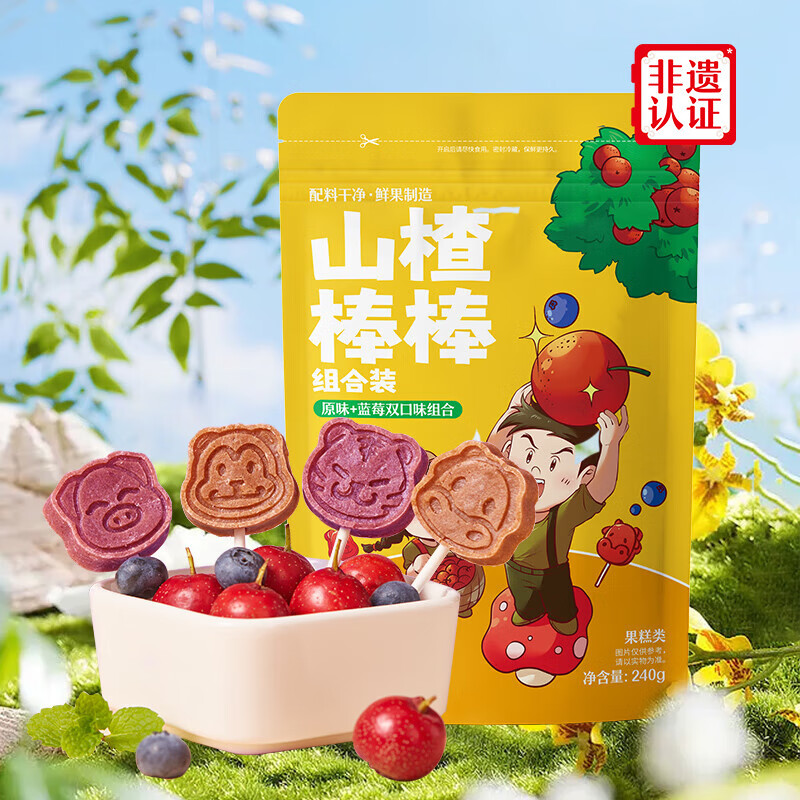 旗舰店沂蒙公社山楂棒棒糖无添加剂蓝莓原味独立小包装儿童零食 山楂棒棒约30支(蓝莓+原味)