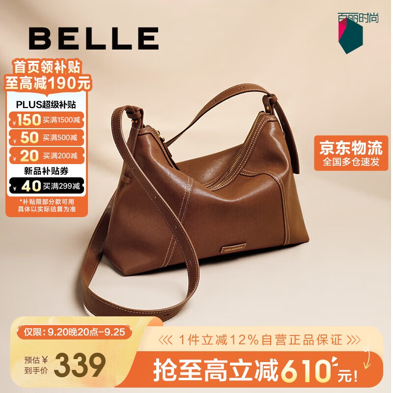 自营百丽女包2025年发财包轻奢通勤hobo单肩斜挎包托特包8517ABX5 卡其色