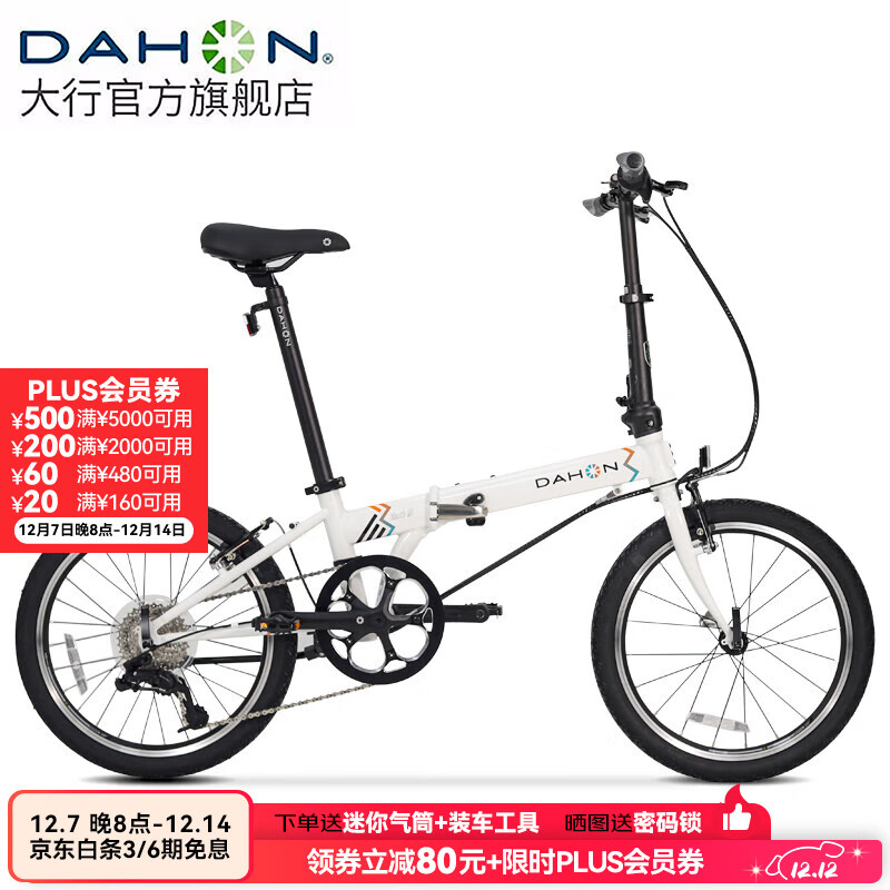 旗舰店大行(DAHON)青春版P8折叠自行车20寸8速成人超轻男女式单车KAC081 亮面白