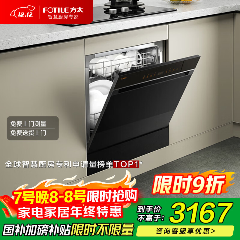自营方太洗碗机嵌入式万家用 高能向气泡洗 12套大容量 灶下洗一级水效 30min超快洗 NJ03S【国家补贴】