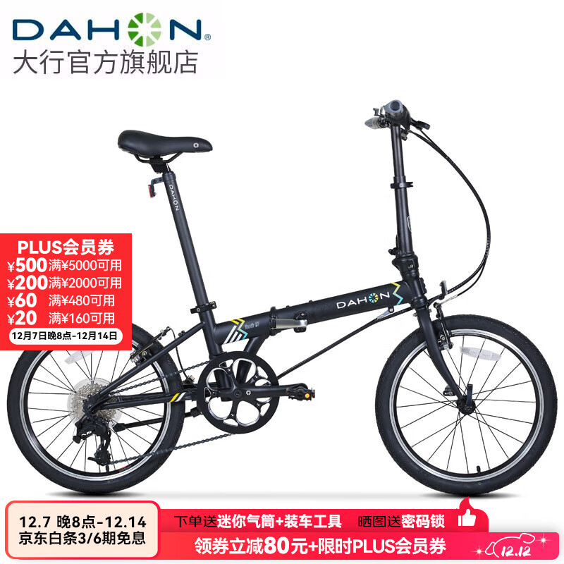 旗舰店大行(DAHON)青春版P8折叠自行车20寸8速成人超轻男女式单车KAC081 消光黑