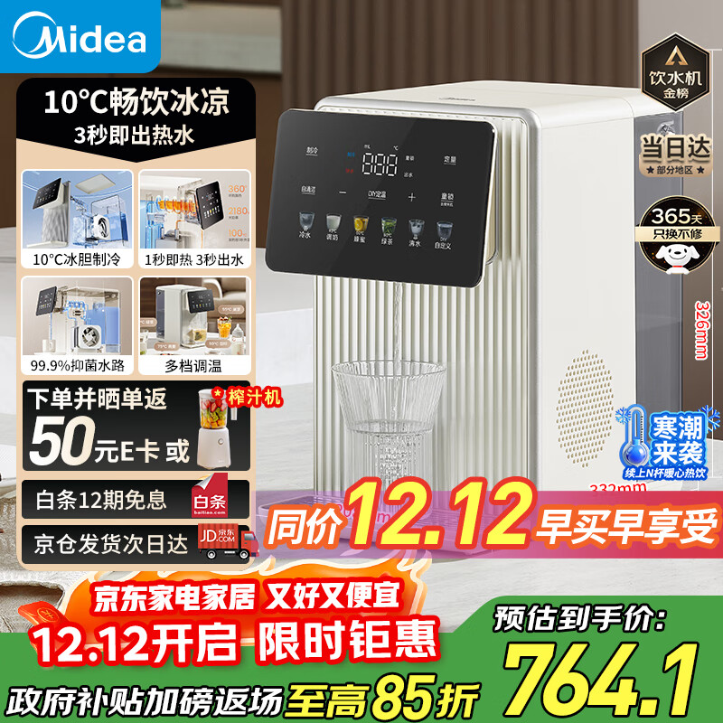 自营美的(Midea)台式即热饮水机桌面家用小型养生壶饮水器保温杯速热泡奶机便携式国家补贴冷热双温MK-JRT03