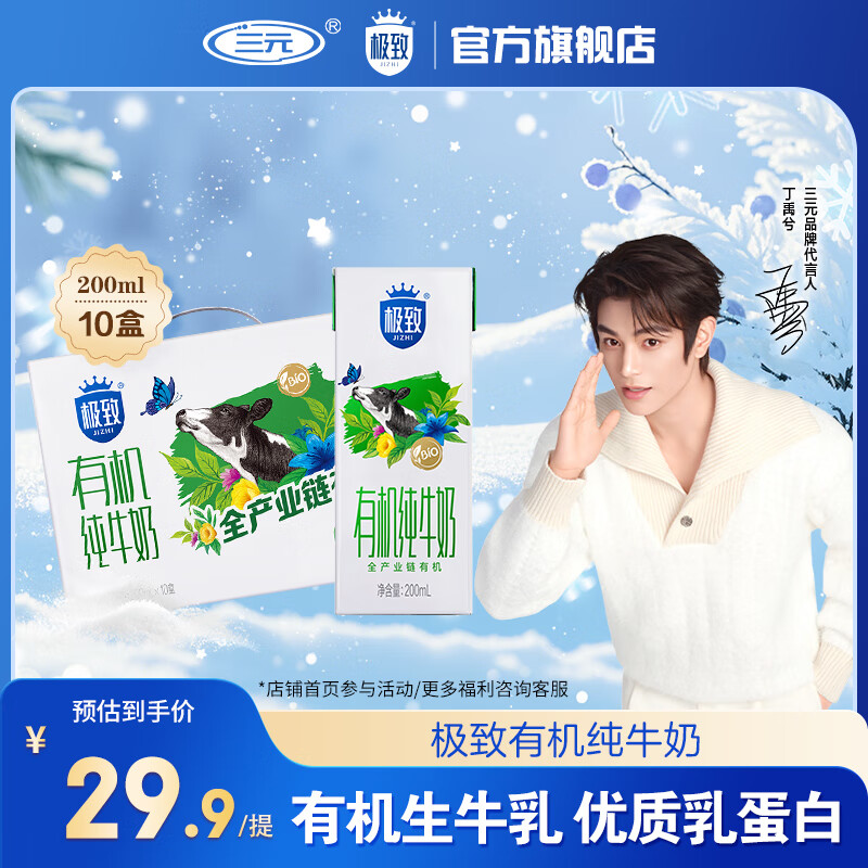 旗舰店三元(SAN YUAN)极致有机纯牛奶3.4g牛乳蛋白200ml*10盒 送礼整箱装