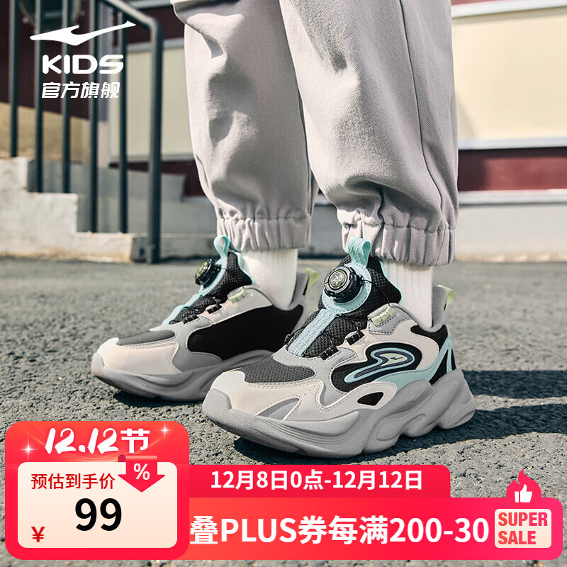 旗舰店鸿星尔克男童运动鞋女童冬季革面休闲鞋户外跑鞋儿童运动鞋丨晨星 正黑/天青色-偏小1码 38