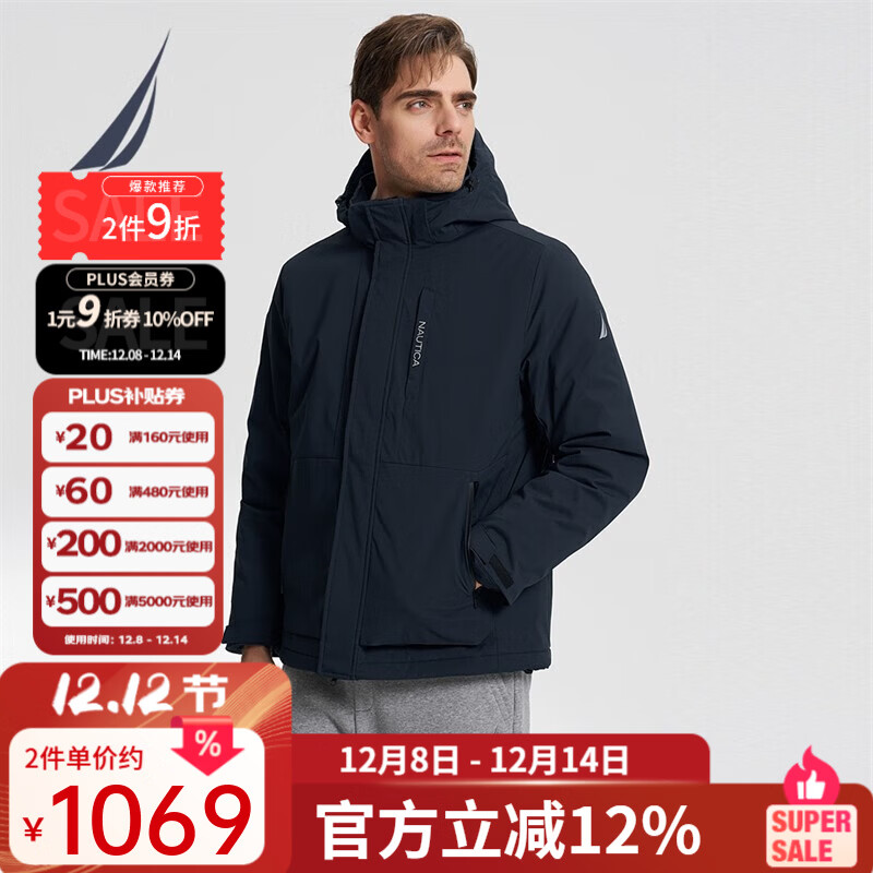 旗舰店诺帝卡(NAUTICA)【商场同款】男装秋冬款防轻溅水保暖休闲厚外套棉服男JO3413 藏青4NV L