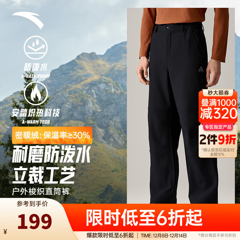 旗舰店安踏大地之壳3.0 | 秋冬季水壳加绒加厚户外长裤男士梭织防泼水软壳裤 【樊振东同款-加绒防泼水】基础黑6502-2 Z哥同款 M