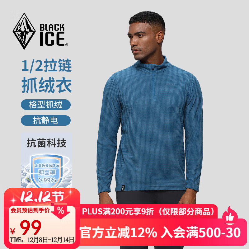 旗舰店黑冰男款抗菌轻量舒适保暖1/2拉链抓绒衣男士抓绒内胆 FAF1101 蓝色 L