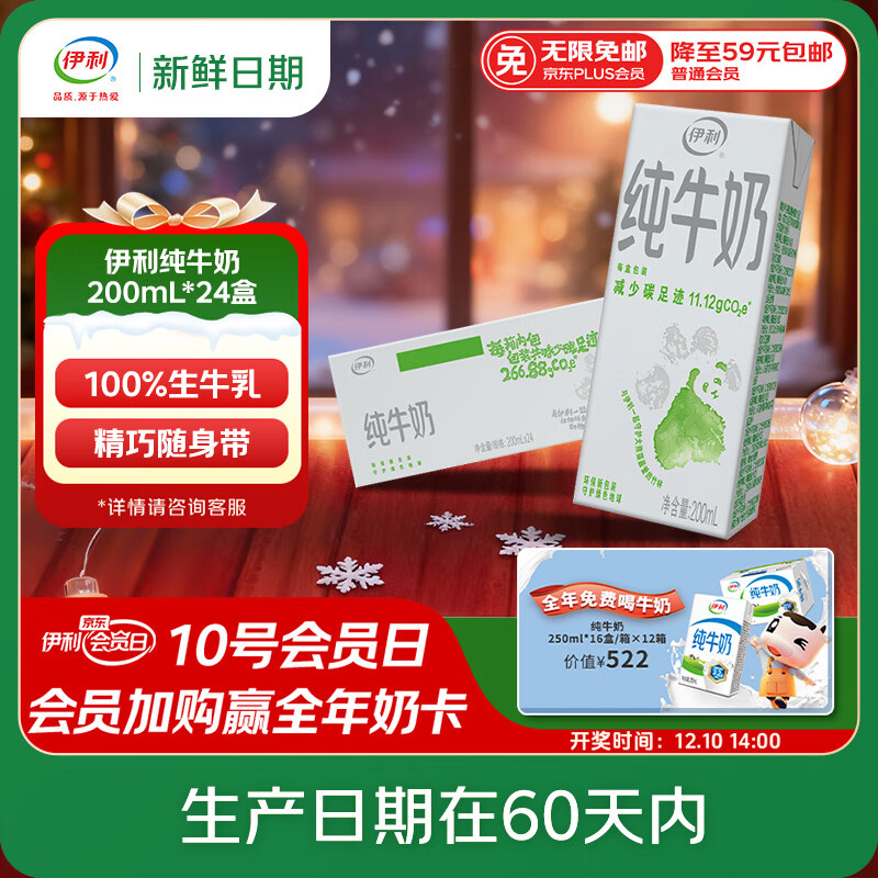 自营伊利【新鲜日期】纯牛奶苗条装 200ml*24盒 优质乳蛋白 礼盒装