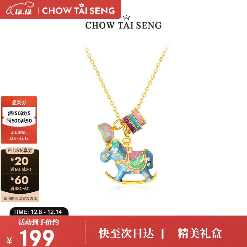 自营周大生彩色摇摇木马项链生肖马吊坠S925珍珠项链银项链女款生日礼物女士