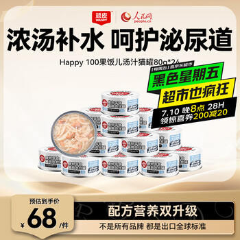自营顽皮(Wanpy)三文鱼猫罐头80g*24罐(汤汁型)出口级 猫咪零食happy100果饭儿