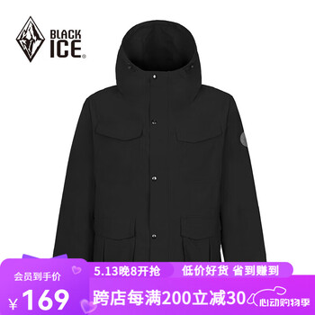 百亿补贴黑冰春夏男士城市轻户外旅行徒步防风防泼水耐磨连帽工装软壳外套 黑色 M