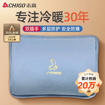 自营志高(CHIGO)热水袋暖水袋 充电暖手宝暖宝宝 智能防爆 双插手亲肤绒 天空青蓝