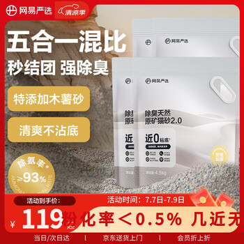 自营网易严选猫砂矿砂活性炭除臭无尘钠基原矿木薯猫砂混合砂 4.5kg*4袋