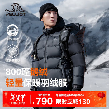 自营伯希和(Pelliot)[经典2.0]鹅绒羽绒服男女冬户外保暖连帽夹克外套114408281黑XXL