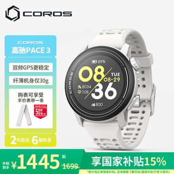 自营高驰(COROS)PACE 3双频全星座运动智能手表跑步骑行越野游泳 白色硅胶款