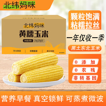 自营北纬妈咪黄糯玉米3.2斤(200g*8穗)东北甜粘糯玉米棒 低脂早餐加热即食
