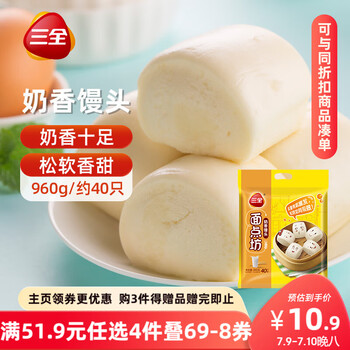 自营三全奶香馒头960g约40只 儿童早餐速食牛奶馒头半成品食品早点