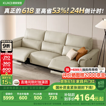 自营顾家家居(KUKA)零靠墙现代简约电动功能皮沙发客厅6196【柔空白】三人位2电动