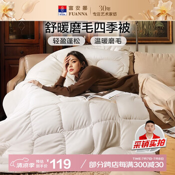 自营富安娜 舒暖纤维被 四季被子春秋被芯 双人加大盖被5.4斤 230*229cm 白