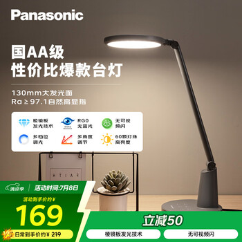 自营松下(Panasonic)AA级护眼灯LED书桌护眼灯学生学习宿舍卧室学习台灯 致飒黑色款