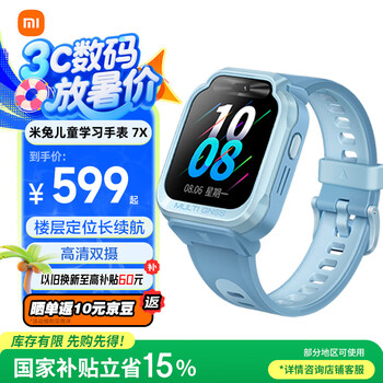 自营小米(MI)米兔儿童电话手表7X国家补贴学生智能学习3D楼层定位高清双摄QQ微信小爱同学防水男孩女孩手表蓝色