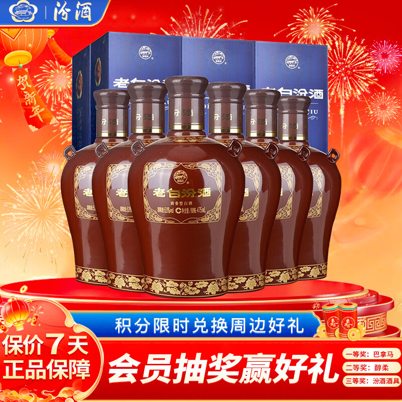 自营汾酒 老白汾封坛15 清香型白酒 53度 475ml*6瓶 整箱装 宴请礼赠自饮
