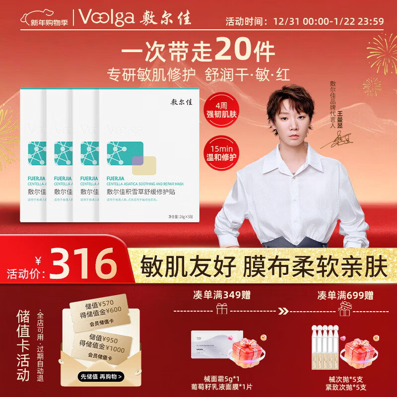 自营敷尔佳【成毅同款】积雪草舒缓修护贴4盒 补水保湿舒缓面膜 礼物送女友